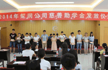 隨后,虹潤公司董事長林善平先生發(fā)表講話,他向與會學子們介紹了公司的成長和創(chuàng)業(yè)經(jīng)歷,鼓勵貧困學生們要奮發(fā)圖強,要努力克服暫時的困難。不要被困難擊倒,不在逆流中倒下,要堅定信念,矢志不渝,就有希望。相信經(jīng)過各位同學的努力,一定會成長為有文化有知識的有用之才。