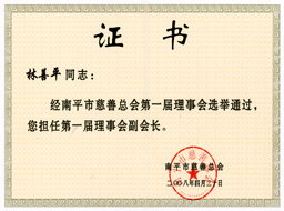 | 公司董事長當(dāng)選為南平市慈善總會(huì)副會(huì)長 | | 公司向南平市慈善總會(huì)捐資三十萬元 |