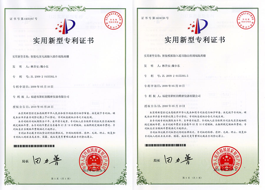 虹潤智能安全柵是虹潤公司全新一代本安系統(tǒng)防爆儀表。產(chǎn)品榮獲智能模擬輸入通訊輸出檢測端隔離柵(專利號 2009201553035)、智能電壓電流輸入操作端隔離柵(專利號2009201553020)2項實用新型專利,智能隔離式安全柵軟件(版權(quán)登記號2008SR21216)1項軟件著作權(quán),獲得國際SIL2功能安全認(rèn)證證書和國家防爆電氣產(chǎn)品質(zhì)量監(jiān)督檢驗中心頒發(fā)的防爆電氣設(shè)備防爆合格證。
