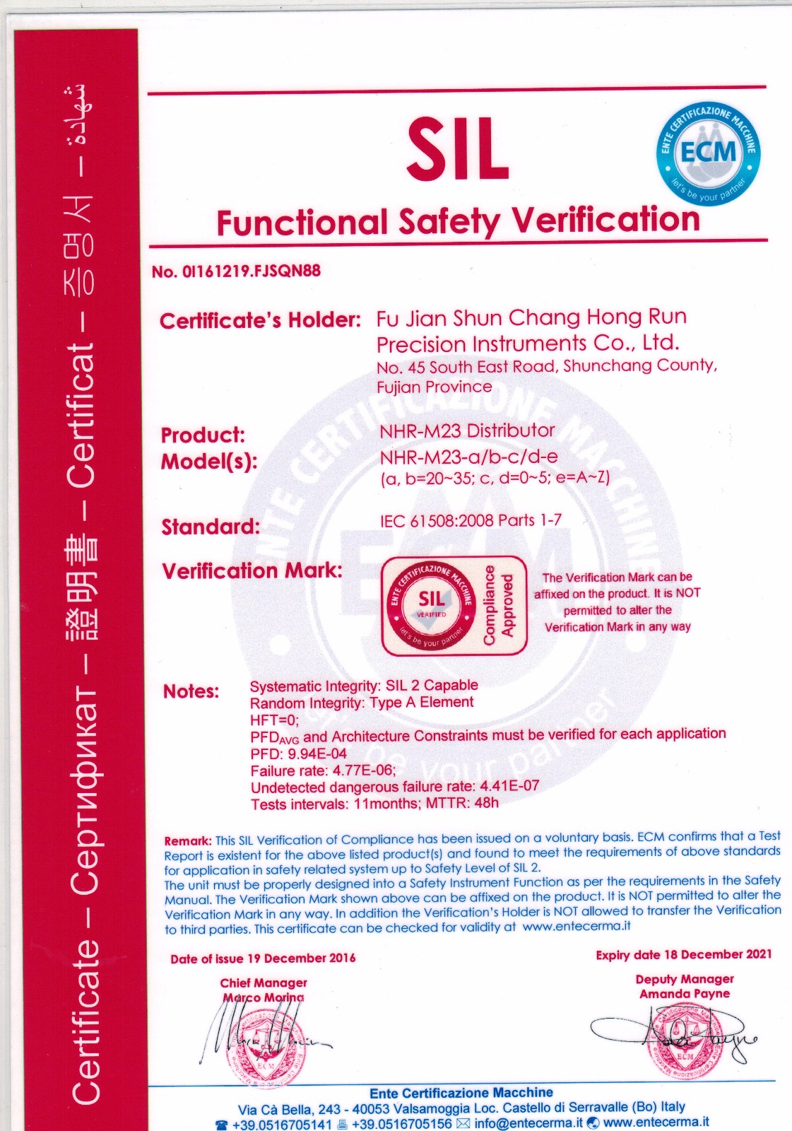 虹潤智能儀表產品獲得國際SIL功能安全認證