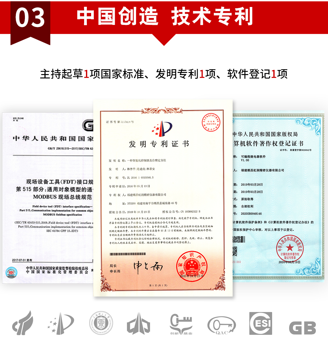 虹潤公司是專業(yè)生產(chǎn)PLC控制器的國家專精特新“小巨人”企業(yè)。生產(chǎn)的簡易PLC控制器,具有全隔離設(shè)計,中文編程,專業(yè)邏輯控制與時間,梯形圖編程方式,遠程RS485通訊監(jiān)測等特點。產(chǎn)品獲得智能化控制器、多通道可編程繼電器等2項國家發(fā)明專利;主持起草流程工業(yè)中電氣/儀表和控制系統(tǒng)的試車國家標(biāo)準,通信系統(tǒng)多通道數(shù)據(jù)采集控制終端規(guī)范軍用標(biāo)準,以及現(xiàn)場設(shè)備集成等5項智能制造國家標(biāo)準,參與國際5G標(biāo)準制定,取得可編程繼電器等2項相關(guān)軟件著作權(quán)。產(chǎn)品廣泛應(yīng)用于工業(yè)自動化設(shè)備、電氣自動化系統(tǒng)、農(nóng)業(yè)灌溉、包裝機械、印刷機械、樓宇自控等諸多領(lǐng)域。