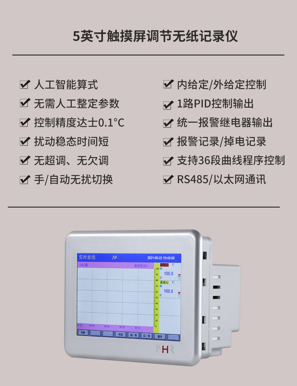 虹潤公司是專業(yè)生產(chǎn)無紙記錄儀的國家專精特新“小巨人”企業(yè)。生產(chǎn)的觸摸屏調(diào)節(jié)無紙記錄儀,具有觸摸大屏顯示,真正人工智能算式,無需人工整定參數(shù),控制精度達士0.1°C,數(shù)據(jù)記錄與轉(zhuǎn)存, RS485/以太網(wǎng)通訊,5/7/9英寸可選等特點。產(chǎn)品獲得智能化控制器、人工智能調(diào)節(jié)器及調(diào)節(jié)方法、模糊PID控制儀及控制方法、平板無紙記錄儀、巡回檢測顯示方法及裝置等5項國家發(fā)明專利,主持起草物聯(lián)網(wǎng)智能記錄儀表通用技術(shù)條件、物聯(lián)網(wǎng)智能溫度儀表通用技術(shù)條件、工業(yè)過程測量和控制系統(tǒng)用智能調(diào)節(jié)器等3項國家標準,通信系統(tǒng)多通道數(shù)據(jù)采集控制終端規(guī)范軍用標準,以及空間數(shù)據(jù)與信息數(shù)據(jù)傳輸系統(tǒng)等2項航天標準,參與國際5G標準制定,取得觸摸屏彩色調(diào)節(jié)無紙記錄儀等3項相關(guān)軟件著作權(quán)。產(chǎn)品廣泛應(yīng)用于電力、石化、冶金、化工、食品、制藥、熱處理、水處理、機械配套等諸多領(lǐng)域。