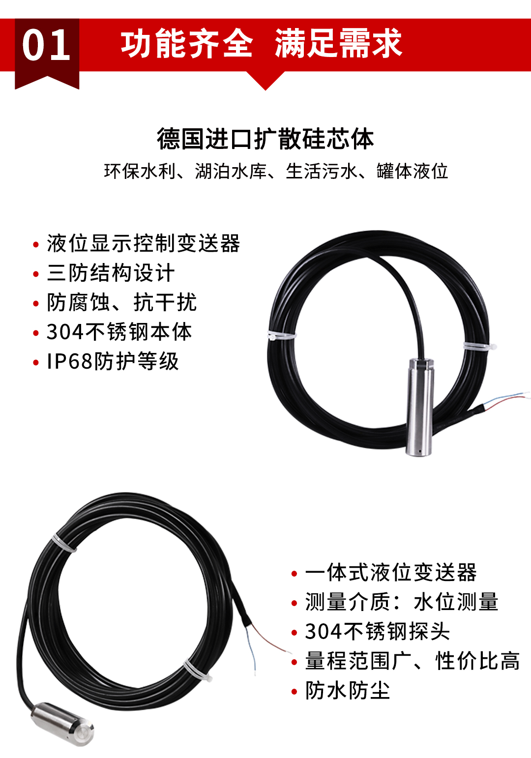 虹潤(rùn)公司是專業(yè)生產(chǎn)液位變送器的國(guó)家專精特新“小巨人”企業(yè),生產(chǎn)的投入式液位變送器,具有采用進(jìn)口芯體,精準(zhǔn)測(cè)量,過(guò)壓保護(hù),高抗干擾,IP68防護(hù)等級(jí)等特點(diǎn)。產(chǎn)品獲得一種數(shù)字顯示低功耗壓力表、一種信號(hào)發(fā)生器裝置等2項(xiàng)國(guó)家發(fā)明專利,主持起草工業(yè)過(guò)程控制系統(tǒng)用模擬輸入兩位或多位輸出儀表、工業(yè)過(guò)程測(cè)量和控制系統(tǒng)用壓力/差壓變送器等2項(xiàng)國(guó)家標(biāo)準(zhǔn),通信系統(tǒng)多通道數(shù)據(jù)采集控制終端規(guī)范軍用標(biāo)準(zhǔn),以及現(xiàn)場(chǎng)設(shè)備集成等5項(xiàng)智能制造國(guó)家標(biāo)準(zhǔn)。參與國(guó)際5G標(biāo)準(zhǔn)制定,取得數(shù)顯壓力表等2項(xiàng)相關(guān)軟件著作權(quán)。產(chǎn)品廣泛應(yīng)用于電力、冶金、農(nóng)業(yè)、食品、制藥、水處理等對(duì)液位監(jiān)測(cè)需求的行業(yè)領(lǐng)域。