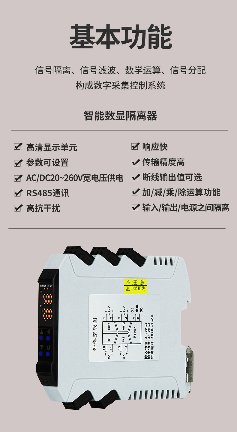 虹潤公司是專業(yè)生產(chǎn)隔離器的國家專精特新“小巨人”企業(yè)。生產(chǎn)的導(dǎo)軌式智能隔離器 ,具有高清顯示單元,參數(shù)可設(shè)置,寬電源供電,響應(yīng)快,帶RS485通訊等特點。產(chǎn)品獲得信號隔離器、一種二端子模塊、無源信號隔離器等3項國家發(fā)明專利,主持起草現(xiàn)場設(shè)備工具(FDT)接口規(guī)范、工業(yè)過程測量和控制系統(tǒng)用隔離式安全柵、工業(yè)過程測量和控制系統(tǒng)用配電器等3項國家標(biāo)準(zhǔn),以及通信系統(tǒng)多通道數(shù)據(jù)采集控制終端規(guī)范軍用標(biāo)準(zhǔn),參與國際5G標(biāo)準(zhǔn)制定,取得智能隔離器等2項相關(guān)軟件著作權(quán)。產(chǎn)品廣泛應(yīng)用于電力、石化,冶金、制藥、水處理、機械配套等各種工業(yè)現(xiàn)場。