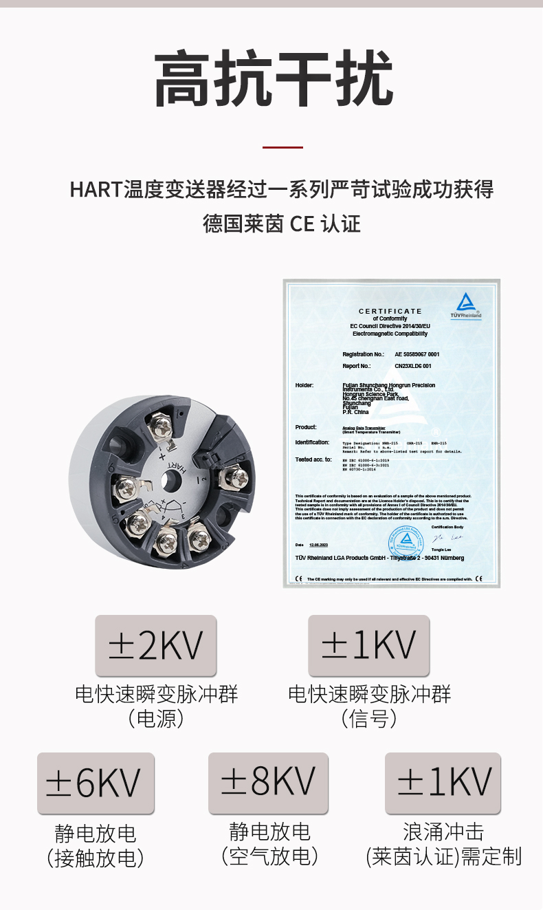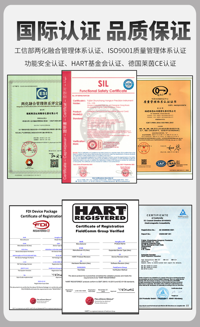 虹潤公司是專業(yè)生產(chǎn)溫度變送器的國家專精特新“小巨人”企業(yè)。生產(chǎn)的智能溫度變送器,具有適配各類溫度傳感器,精度高,穩(wěn)定性好,通過編程線修改輸入信號類型及量程,高抗干擾等特點。該產(chǎn)品不僅通過HART基金會認(rèn)證、德國萊茵 CE 認(rèn)證與 SIL 功能安全認(rèn)證,還獲得具備減震抗干擾能力的溫度變送器、信號隔離器、一種二端子模塊、無源信號隔離器等4項國家發(fā)明專利,主持起草物聯(lián)網(wǎng)智能溫度儀表、現(xiàn)場設(shè)備工具(FDT)接口規(guī)范、工業(yè)過程測量和控制系統(tǒng)用溫度變送器等3項國家標(biāo)準(zhǔn),以及通信系統(tǒng)多通道數(shù)據(jù)采集控制終端規(guī)范軍用標(biāo)準(zhǔn),參與國際5G標(biāo)準(zhǔn)制定,取得智能溫度變送器、HART溫度變送器等3項相關(guān)軟件著作權(quán)。產(chǎn)品廣泛應(yīng)用于石油、化工、電力、冶金、制藥、食品、水處理等各種工業(yè)領(lǐng)域。