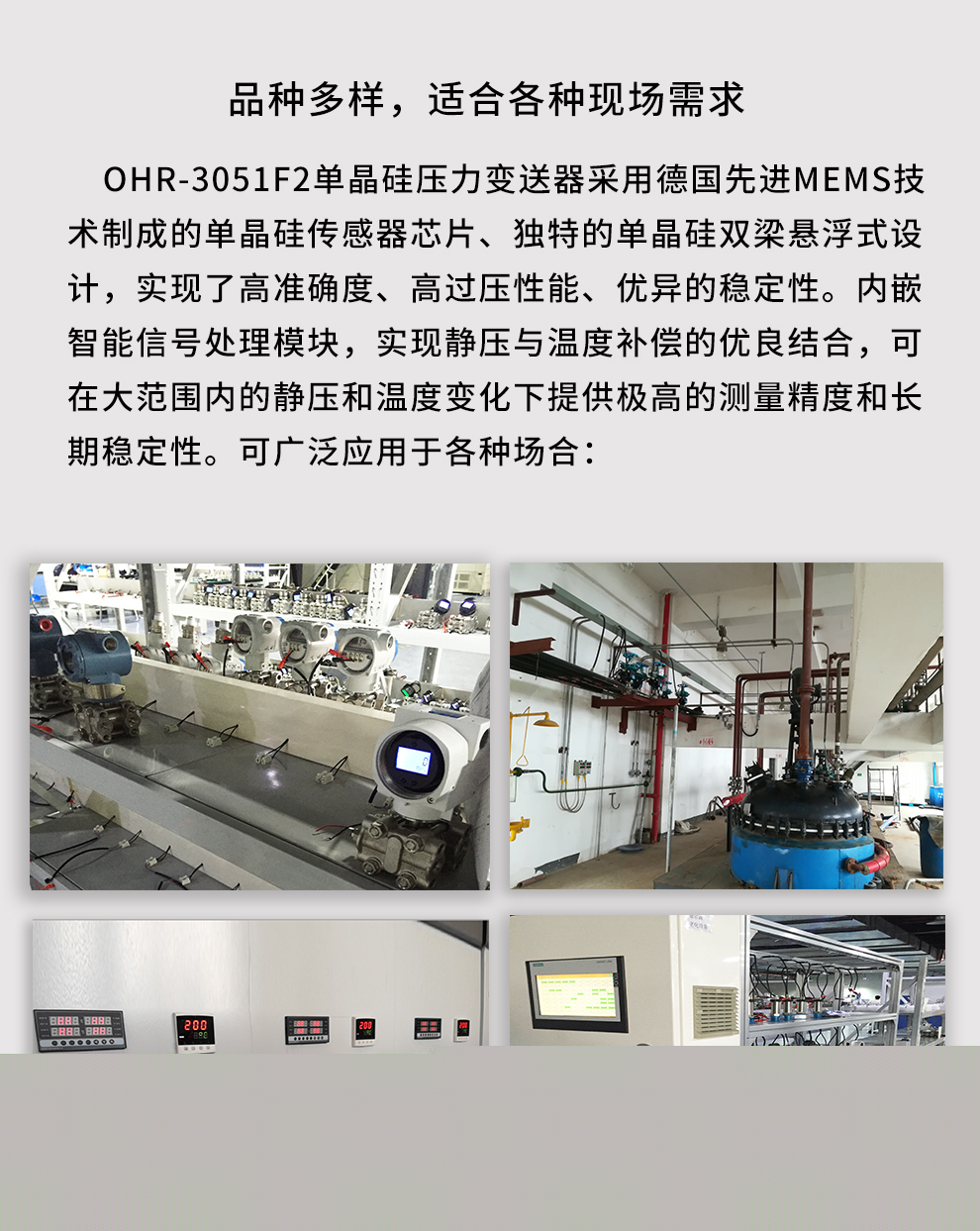 虹潤公司是專業(yè)生產壓力變送器的國家專精特新“小巨人”企業(yè),生產的單晶硅壓力變送器,具有高精度,小溫漂,性能穩(wěn)定,帶HART通訊,抗干擾能力強,自診斷功能等特點。產品獲得一種數字顯示低功耗壓力表、一種信號發(fā)生器裝置等2項國家發(fā)明專利,主持起草工業(yè)過程控制系統(tǒng)用模擬輸入兩位或多位輸出儀表、工業(yè)過程測量和控制系統(tǒng)用壓力/差壓變送器等2項國家標準,通信系統(tǒng)多通道數據采集控制終端規(guī)范軍用標準,以及現(xiàn)場設備集成等5項智能制造國家標準。參與國際5G標準制定,取得數顯壓力表等2項相關軟件著作權。產品廣泛應用于化工、食品、制藥、電力、設備配套、供暖、水處理、樓宇等行業(yè),需精準測量流體壓力的現(xiàn)場。
