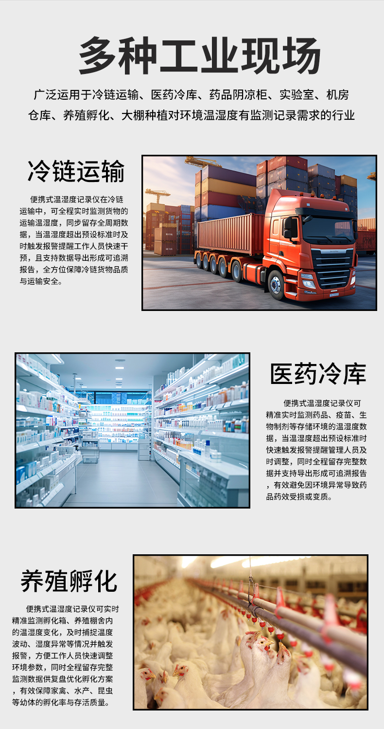 虹潤公司是專業(yè)生產(chǎn)環(huán)境監(jiān)測儀表的國家專精特新“小巨人”企業(yè)。生產(chǎn)的便攜式溫濕度記錄儀,具有溫濕度記錄與轉(zhuǎn)存,手機充電電池,磁吸或壁掛安裝,故障報警提示,配上位機軟件等特點。產(chǎn)品獲得一種手持式低功耗溫濕度檢測儀、無紙記錄儀等2項國家發(fā)明專利,主持起草物聯(lián)網(wǎng)智能溫度儀表通用技術(shù)條件、冷鏈溫度記錄儀等2項國家標準,通信系統(tǒng)多通道數(shù)據(jù)采集控制終端規(guī)范軍用標準,以及現(xiàn)場設備集成等5項智能制造國家標準,參與國際5G標準制定,取得便攜式溫濕度記錄儀等3項相關(guān)軟件著作權(quán)。產(chǎn)品廣泛應用于冷鏈運輸、醫(yī)藥冷庫、藥品陰涼柜、實驗室、機房倉庫、養(yǎng)殖孵化、大棚種植等諸多領(lǐng)域。
