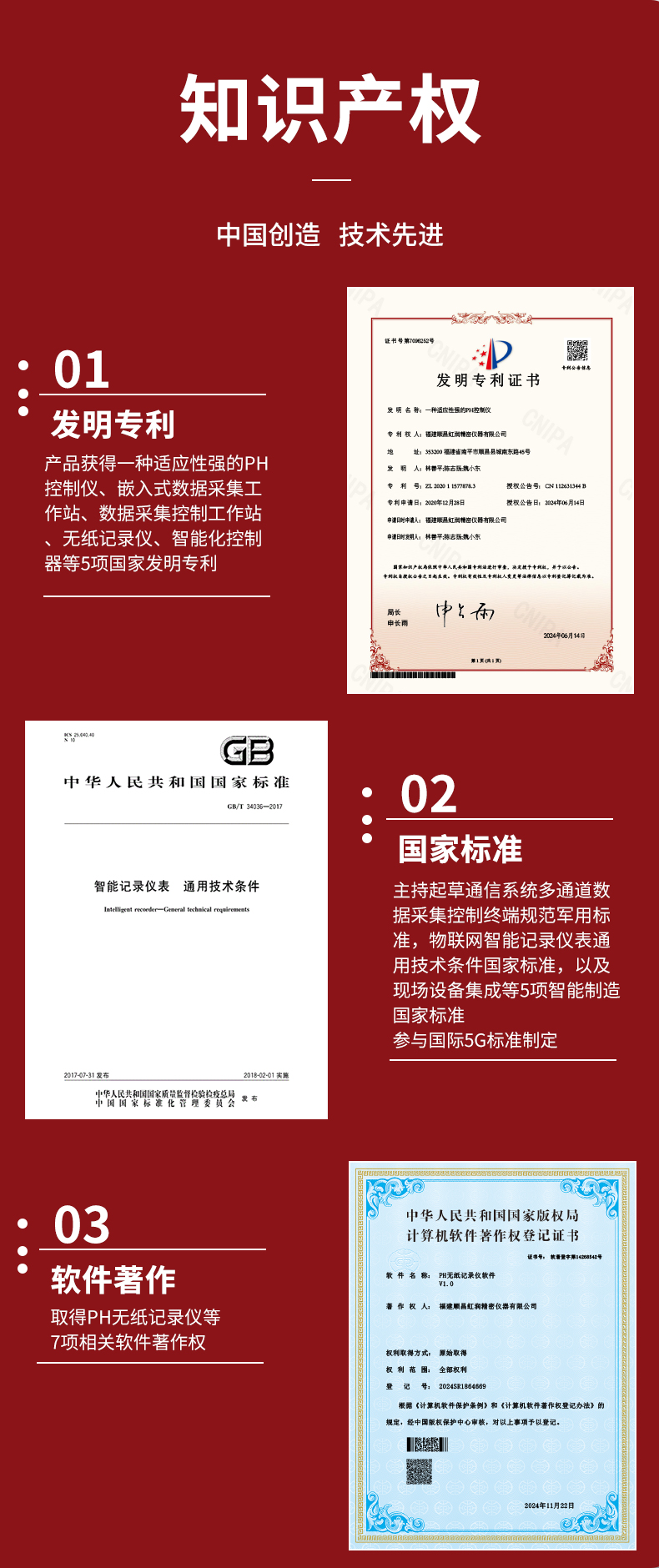虹潤公司是專業(yè)生產(chǎn)水質(zhì)分析儀的國家專精特新“小巨人”企業(yè)。生產(chǎn)的水質(zhì)多參數(shù)監(jiān)測記錄儀,具有多參數(shù)采集同屏顯示,數(shù)據(jù)記錄與轉(zhuǎn)存,支持WiFi或4G實(shí)現(xiàn)數(shù)據(jù)云方案,內(nèi)置與外配組態(tài)軟件等特點(diǎn)。產(chǎn)品獲得一種適應(yīng)性強(qiáng)PH控制儀、嵌入式數(shù)據(jù)采集工作站、數(shù)據(jù)采集控制工作站、無紙記錄儀、智能化控制器等5項(xiàng)國家發(fā)明專利;主持起草通信系統(tǒng)多通道數(shù)據(jù)采集控制終端規(guī)范軍用標(biāo)準(zhǔn),物聯(lián)網(wǎng)智能記錄儀表通用技術(shù)條件國家標(biāo)準(zhǔn),以及現(xiàn)場設(shè)備集成等5項(xiàng)智能制造國家標(biāo)準(zhǔn),參與國際5G標(biāo)準(zhǔn)制定;取得PH無紙記錄儀等7項(xiàng)相關(guān)軟件著作權(quán)。產(chǎn)品廣泛應(yīng)用于實(shí)驗(yàn)室、水處理、環(huán)境監(jiān)測、食品、制藥、農(nóng)業(yè)、工業(yè)流程控制等諸多領(lǐng)域。