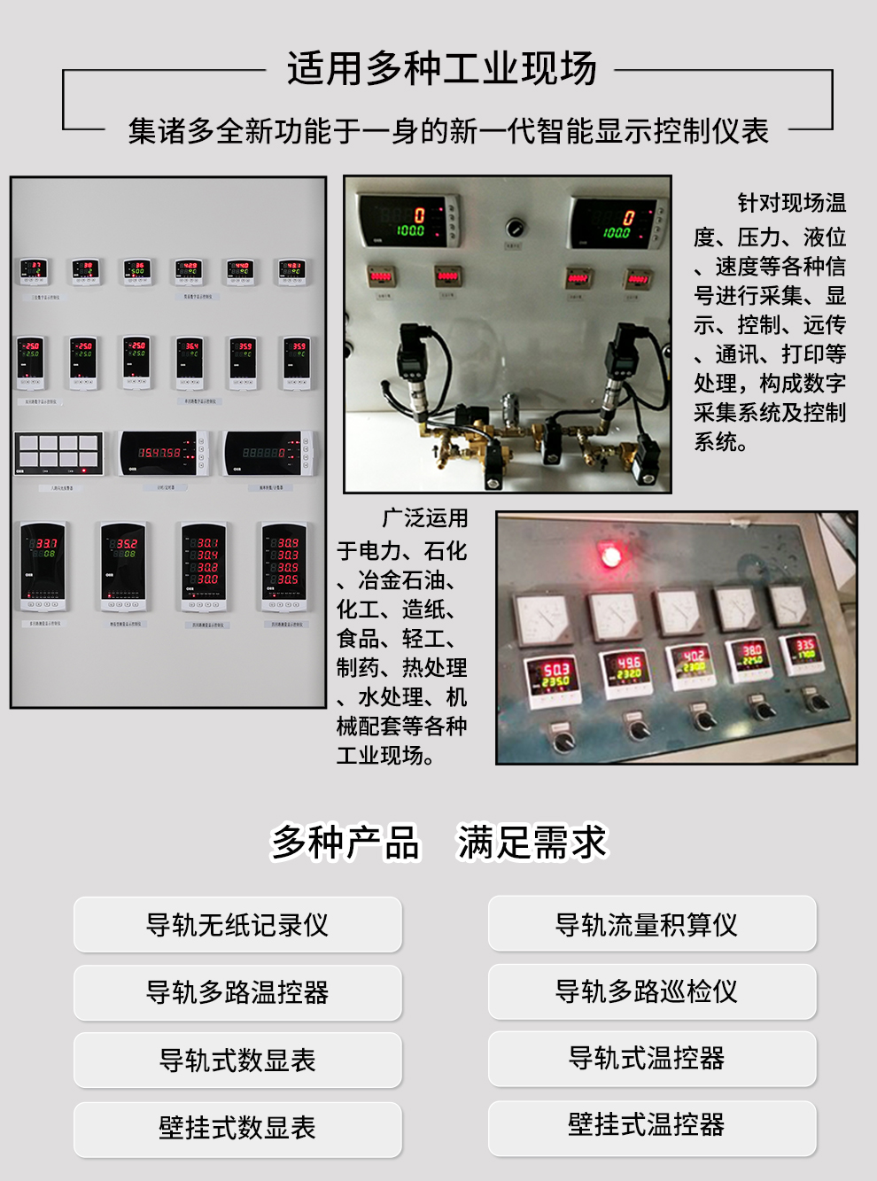 虹潤公司是專業(yè)生產(chǎn)多路溫度巡檢儀的國家專精特新“小巨人”企業(yè)。生產(chǎn)的導(dǎo)軌多路巡檢儀,具有八回路巡檢采集,全切換信號輸入,高抗電磁干擾,全隔離設(shè)計(jì),分別報(bào)警/分別變送輸出等特點(diǎn)。產(chǎn)品獲得巡回檢測顯示方法及裝置以及工業(yè)模塊的導(dǎo)軌式安裝結(jié)構(gòu)等2項(xiàng)國家發(fā)明專利,主持起草工業(yè)過程控制系統(tǒng)用模擬輸入兩位或多位輸出儀表、物聯(lián)網(wǎng)智能溫度儀表通用技術(shù)條件等2項(xiàng)國家標(biāo)準(zhǔn),以及通信系統(tǒng)多通道數(shù)據(jù)采集控制終端規(guī)范軍用標(biāo)準(zhǔn),參與國際5G標(biāo)準(zhǔn)制定,取得巡回檢測控制儀等3項(xiàng)相關(guān)軟件著作權(quán)。產(chǎn)品廣泛應(yīng)用于石化、冶金、電力、食品、制藥、水處理、實(shí)驗(yàn)室等諸多領(lǐng)域。