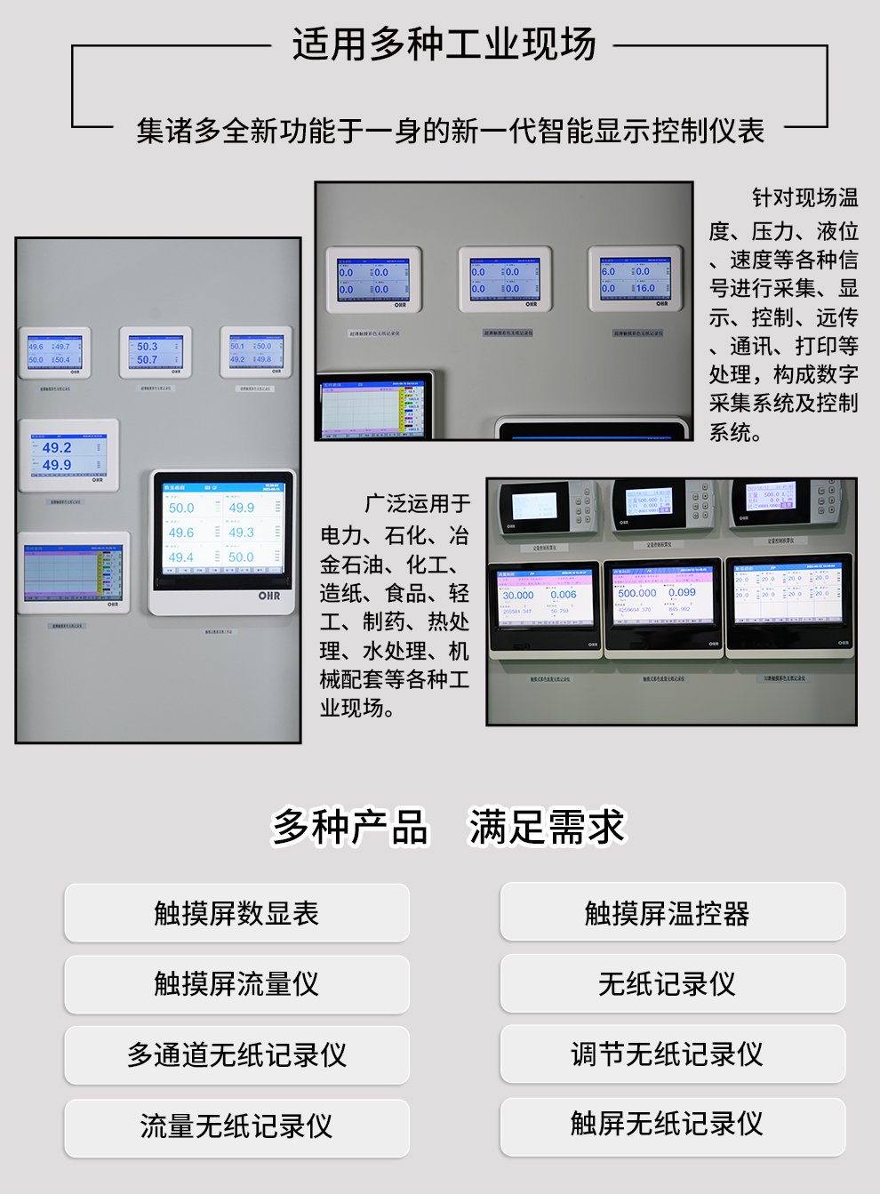 虹潤公司是專業(yè)生產(chǎn)無紙記錄儀的國家專精特新“小巨人”企業(yè)。生產(chǎn)的觸摸屏溫控器,具有觸摸大屏顯示,真正人工智能算式,無需人工整定參數(shù),控制精度達(dá)士0.1°C, RS485/以太網(wǎng)通訊,5/7/9英寸可選等特點。產(chǎn)品獲得智能化控制器、人工智能調(diào)節(jié)器及調(diào)節(jié)方法、模糊PID控制儀及控制方法、平板無紙記錄儀、巡回檢測顯示方法及裝置等5項國家發(fā)明專利,主持起草物聯(lián)網(wǎng)智能記錄儀表通用技術(shù)條件、物聯(lián)網(wǎng)智能溫度儀表通用技術(shù)條件、工業(yè)過程測量和控制系統(tǒng)用智能調(diào)節(jié)器等3項國家標(biāo)準(zhǔn),通信系統(tǒng)多通道數(shù)據(jù)采集控制終端規(guī)范軍用標(biāo)準(zhǔn),以及空間數(shù)據(jù)與信息數(shù)據(jù)傳輸系統(tǒng)等2項航天標(biāo)準(zhǔn),參與國際5G標(biāo)準(zhǔn)制定,取得觸摸屏彩色調(diào)節(jié)無紙記錄儀等3項相關(guān)軟件著作權(quán)。產(chǎn)品廣泛應(yīng)用于電力、石化、冶金、化工、食品、制藥、熱處理、水處理、機械配套等諸多領(lǐng)域。