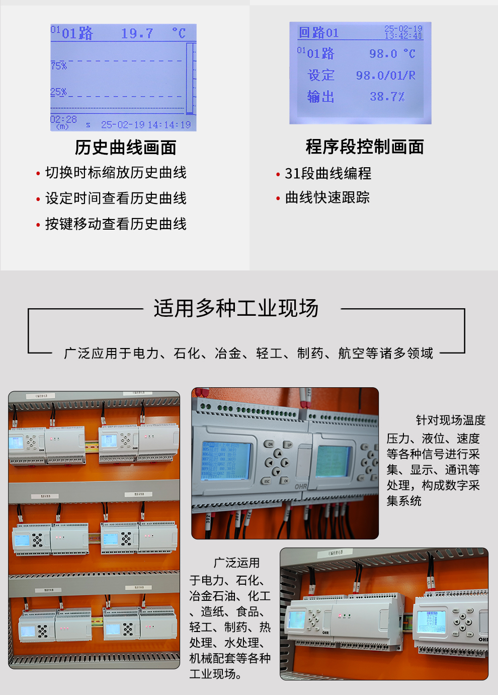 虹潤公司是專業(yè)生產溫控器的國家專精特新“小巨人”企業(yè)。生產的溫度控制器,具有4路或8路PID控制,真正人工智能算式,無需人工整定參數,控制精度達士0.1°C,數據記錄與轉存等特點。產品獲得智能化控制器、人工智能調節(jié)器及調節(jié)方法、模糊PID控制儀及控制方法、一種平板無紙記錄儀、巡回檢測顯示方法及裝置等5項國家發(fā)明專利,主持起草物聯網智能記錄儀表、物聯網智能溫度儀表、工業(yè)過程測量和控制系統(tǒng)用智能調節(jié)器等3項國家標準,參與國際5G標準制定,取得液晶溫控器儀表等3項相關軟件著作權。產品廣泛應用于電石化、工業(yè)爐、試驗設備、注塑機械、包裝機械等需要對現場溫度進行監(jiān)測控制的行業(yè)。