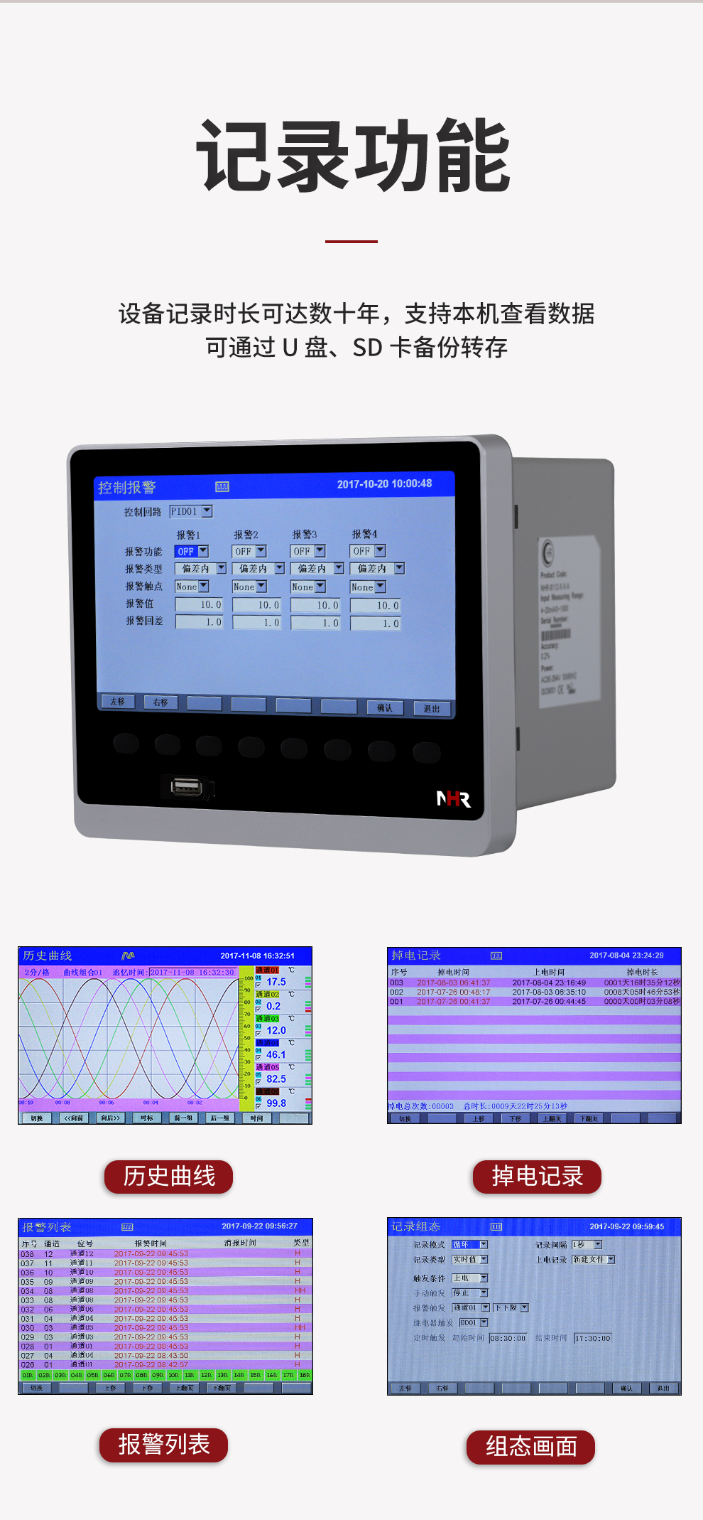 NHR-8700系列多路彩色數(shù)據(jù)采集無紙記錄儀
