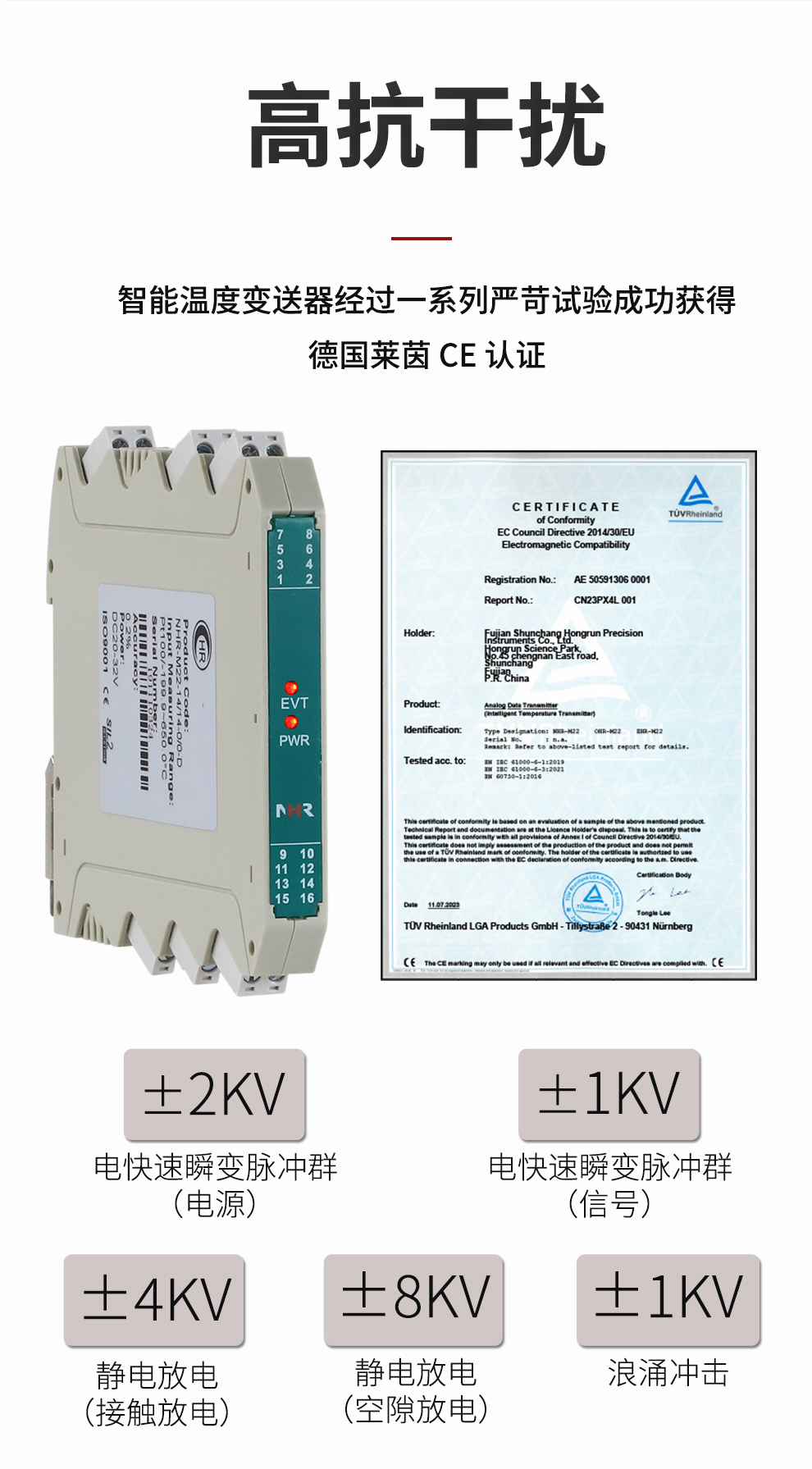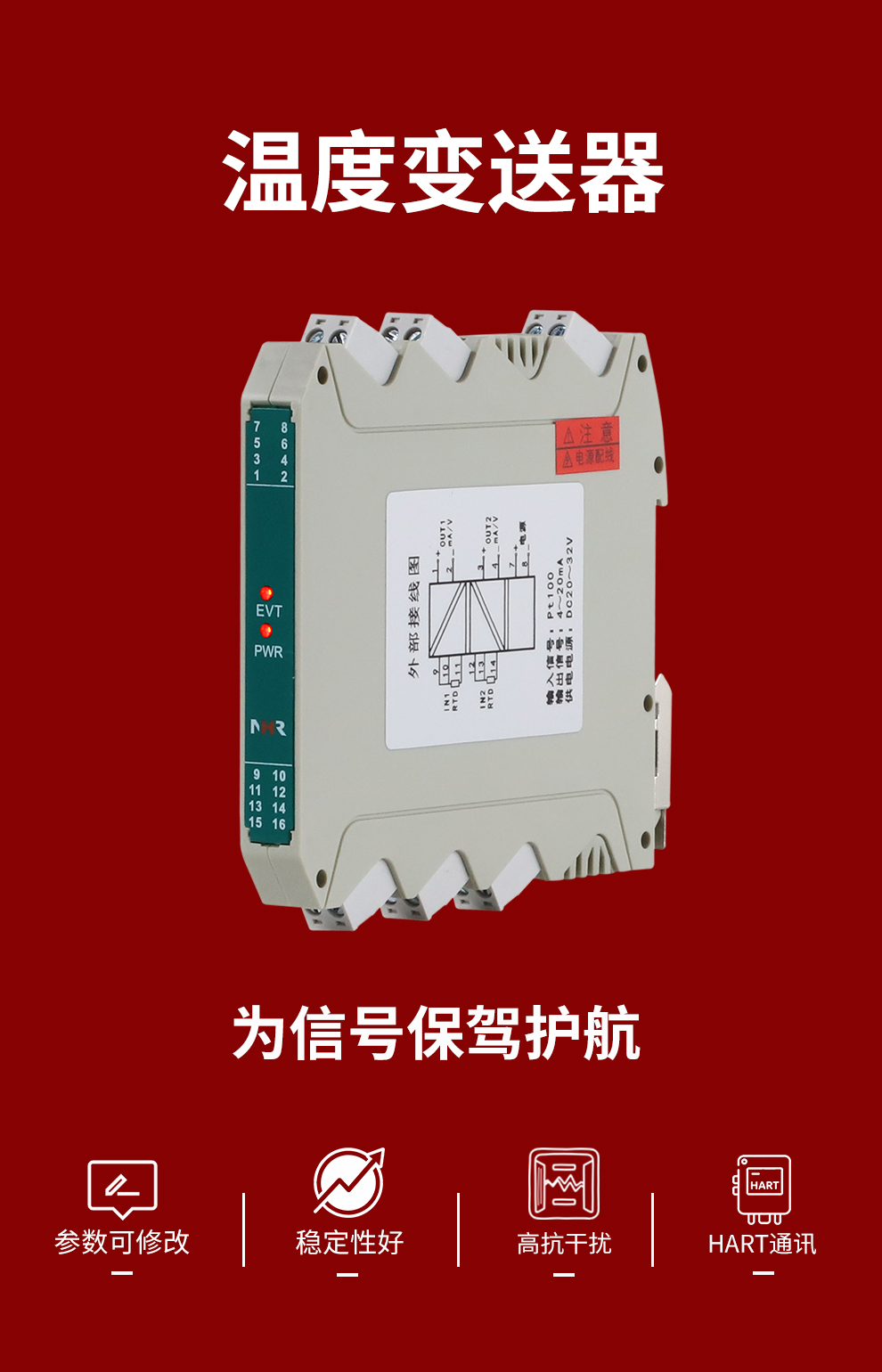 虹潤公司是專業(yè)生產(chǎn)溫度變送器的國家專精特新“小巨人”企業(yè)。生產(chǎn)的溫度變送器,具有采用磁隔離技術(shù),配套編程器可修改參數(shù),抗干擾能力強,穩(wěn)定性好,帶RS485或HART通訊等特點。該產(chǎn)品不僅通過HART基金會認(rèn)證、德國萊茵 CE 認(rèn)證與 SIL 功能安全認(rèn)證,還獲得具備減震抗干擾能力的溫度變送器、信號隔離器、一種二端子模塊、無源信號隔離器等4項國家發(fā)明專利,主持起草物聯(lián)網(wǎng)智能溫度儀表、現(xiàn)場設(shè)備工具(FDT)接口規(guī)范、工業(yè)過程測量和控制系統(tǒng)用溫度變送器等3項國家標(biāo)準(zhǔn),以及通信系統(tǒng)多通道數(shù)據(jù)采集控制終端規(guī)范軍用標(biāo)準(zhǔn),參與國際5G標(biāo)準(zhǔn)制定,取得溫度變送器等5項相關(guān)軟件著作權(quán)。產(chǎn)品廣泛應(yīng)用于石油、電力、化工,冶金、制藥、紡織、橡膠制造等工業(yè)領(lǐng)域現(xiàn)場自動化測溫過程。