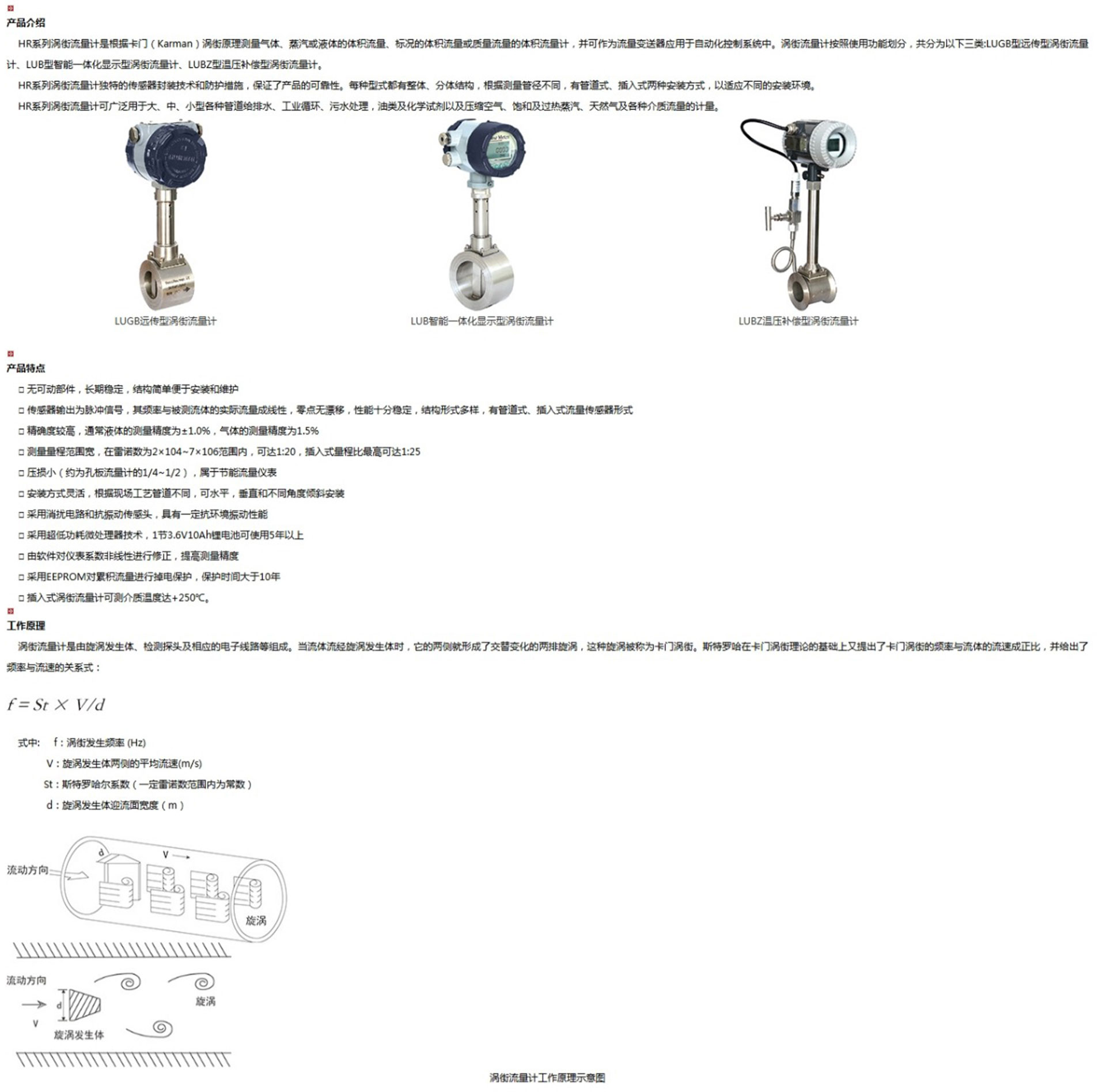 HR系列渦街流量計是根據(jù)卡門(Karman)渦街原理測量氣體、蒸汽或液體的體積流量、標況的體積流量或質(zhì)量流量的體積流量計,并可作為流量變送器應用于自動化控制系統(tǒng)中。廣泛用于大、中、小型各種管道給排水、工業(yè)循環(huán)、污水處理,油類及化學試劑以及壓縮空氣、飽和及過熱蒸汽、天然氣及各種介質(zhì)流量的計量。